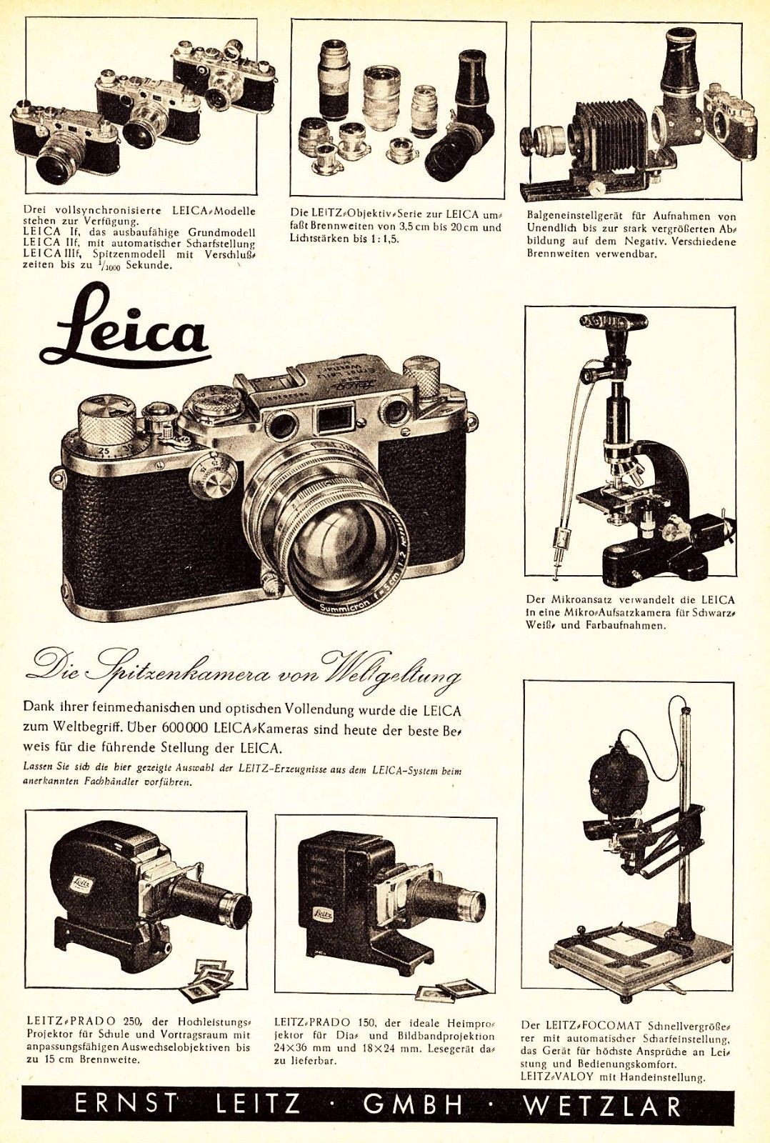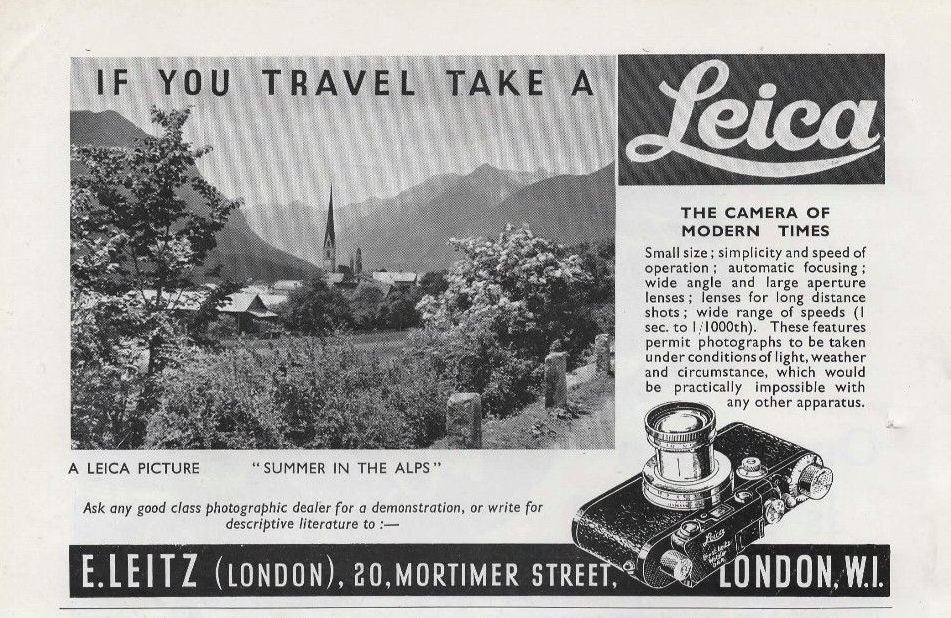 Barnack Leicas advertisements and posters. Leica models made before M series appeared.